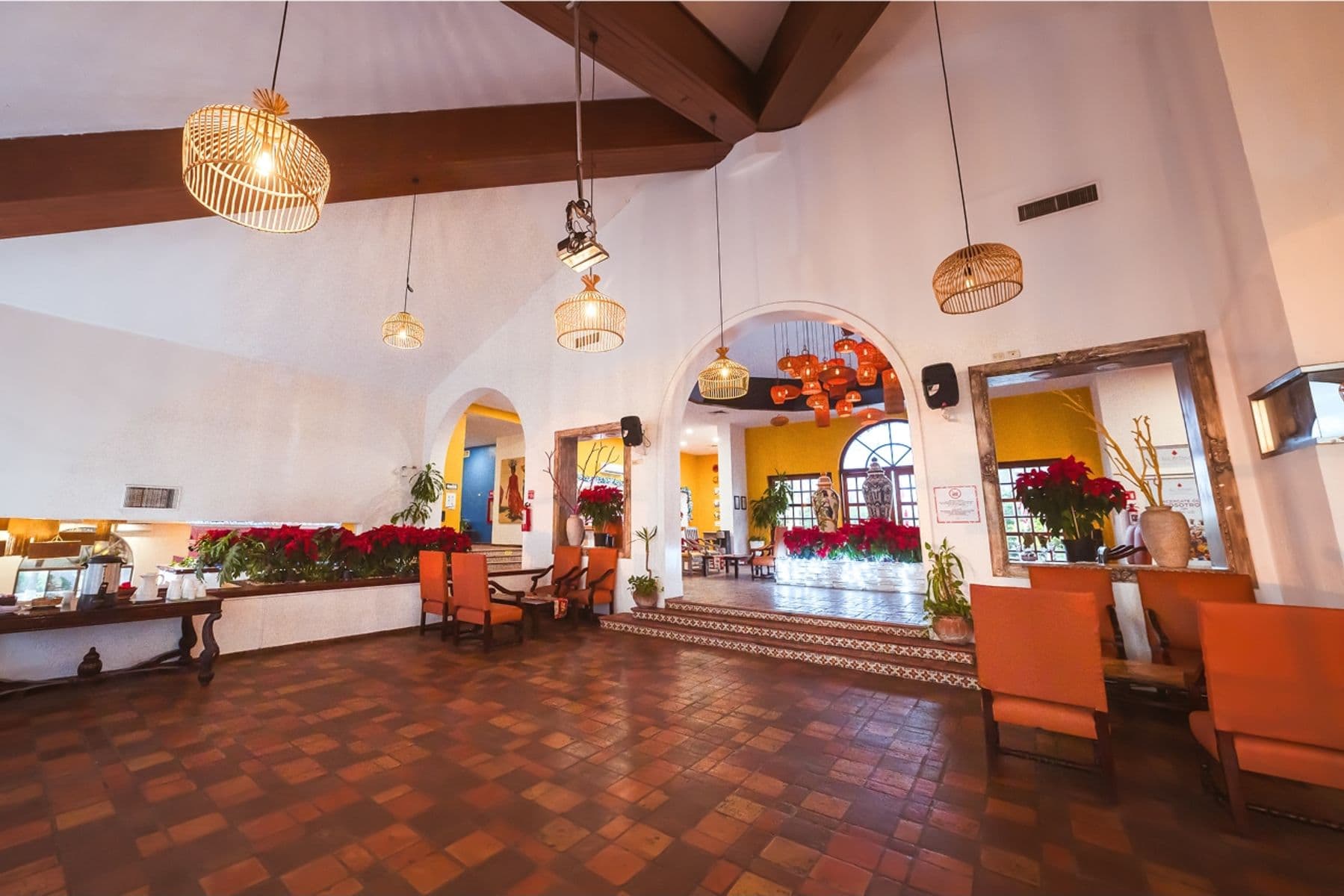 Main restaurant with themed nightly dinners — Italian, Mexican, Caribbean. Pool and sea views. Open for breakfast, lunch, and dinner.